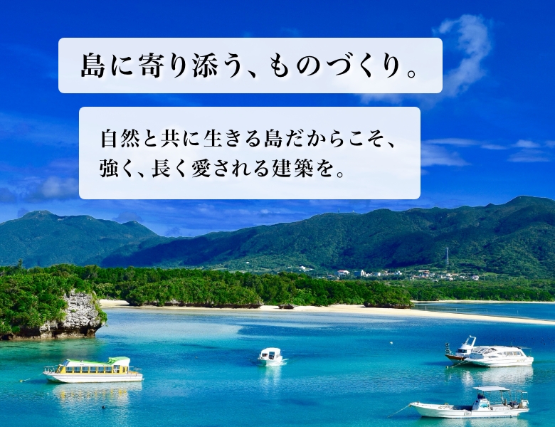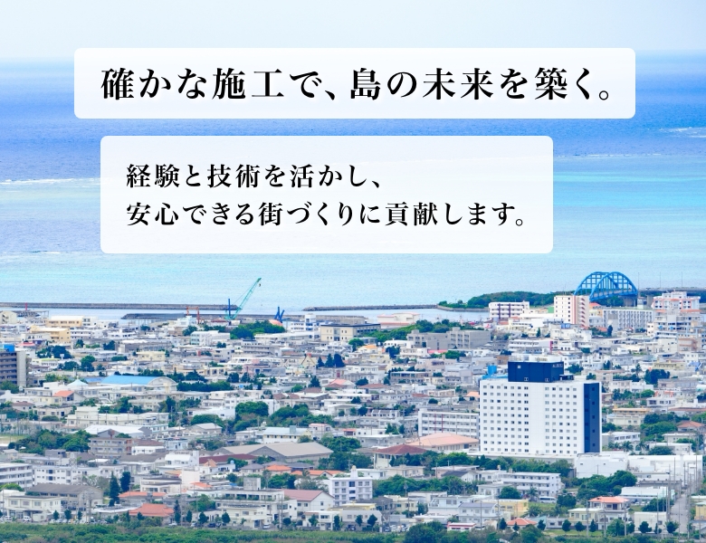 石垣島に根ざした建設会社として、建築工事と土木工事を通して地域の暮らしと街づくりを支え、安心して長く使える建物とインフラ整備に取り組んでいます。